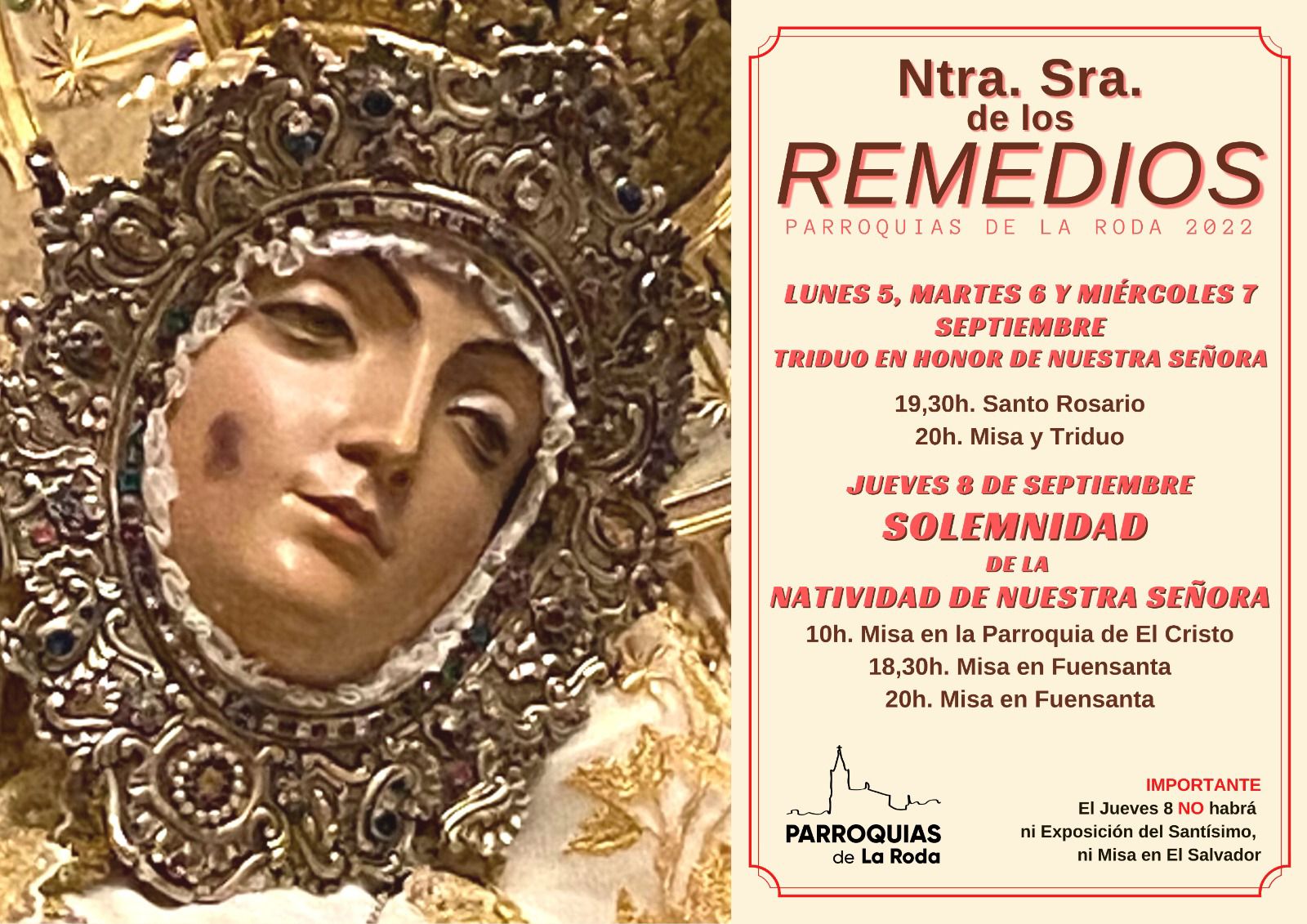 El próximo jueves 8 de septiembre celebramos un día importante para nuestra Parroquia, y es la Solemnidad de la Natividad de la Virgen María. Nosotros, podemos elevar esta fiesta a solemnidad por ser el día de la Virgen de los Remedios, nuestra patrona.